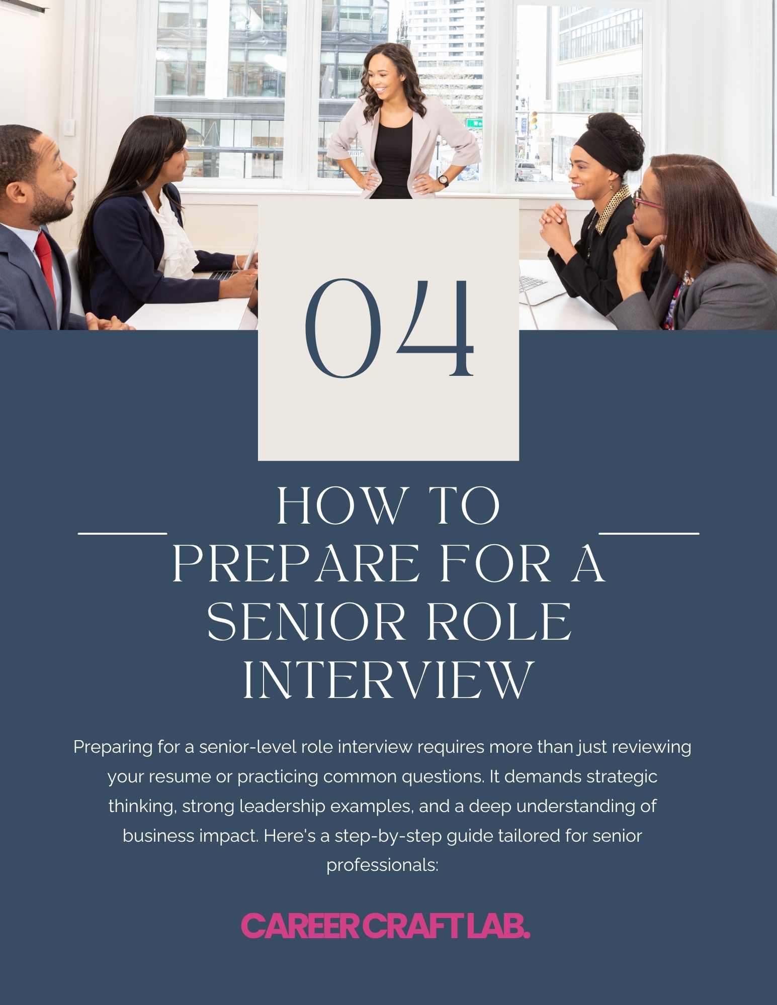 Leadership-focused prep to help you speak like a decision-maker, demonstrate strategic impact, and show up with executive presence.
